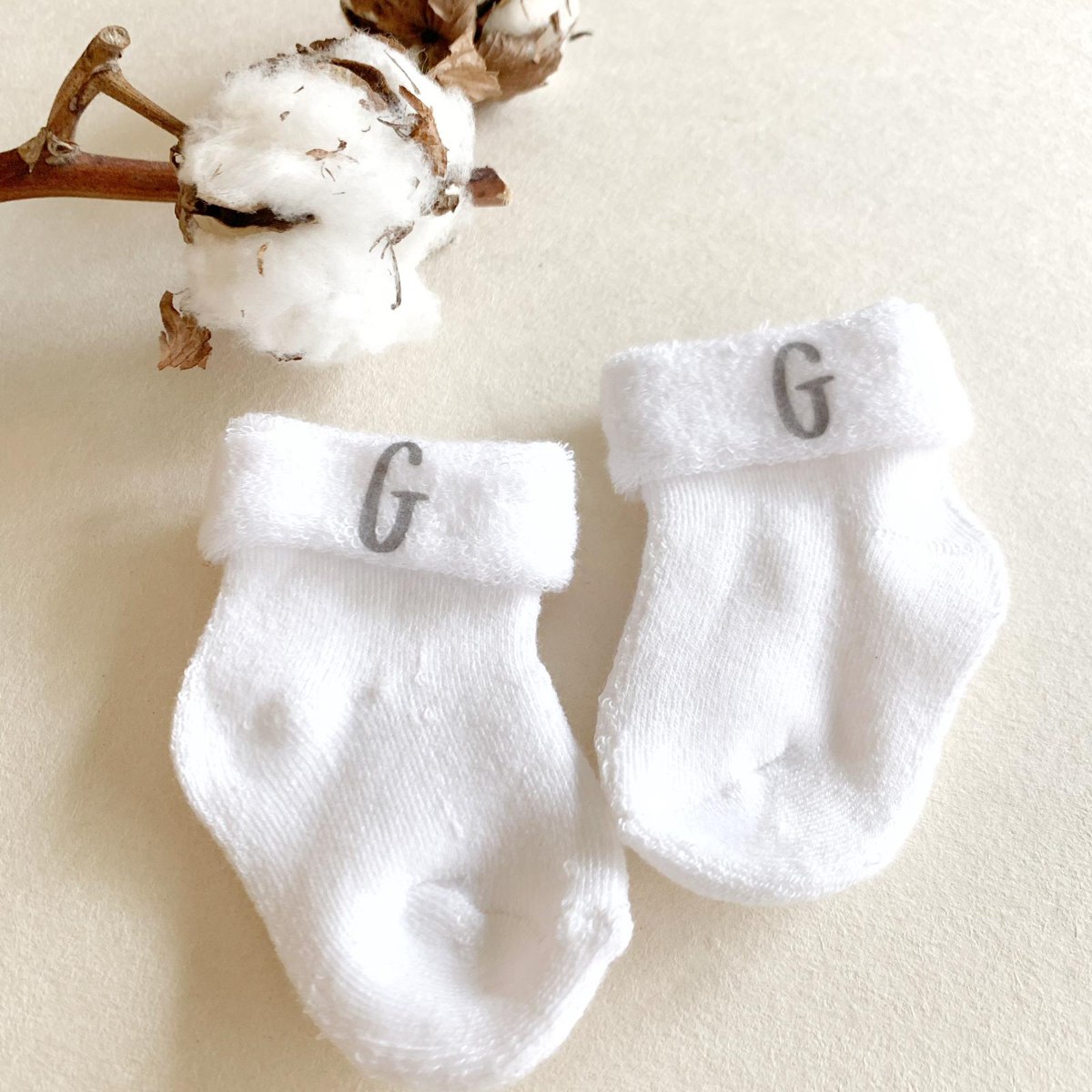 גרביים לתינוק הנולד 100% כותנה, חמות ונעימות- עם הדפס אות ראשונה של התינוק