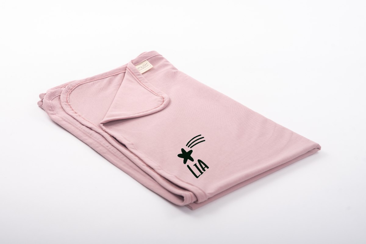 שמיכת ג'רסי דו צדדית עם שם התינוק- ורוד עתיק