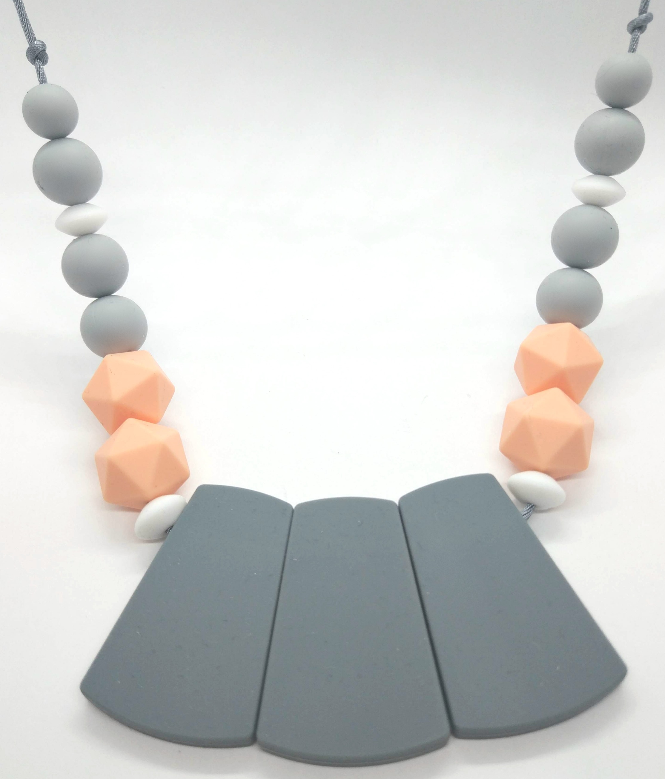 שרשרת סטייטמנט אופנתית בגווני אפור, ורוד ולבן- מתאימה גם לאירועי ערב.